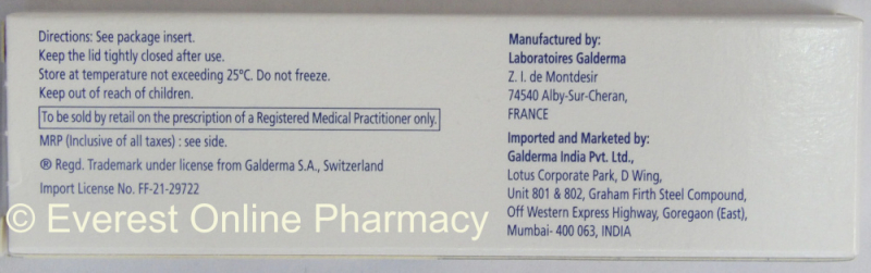 Manufactured by Laboratories Galderma in France. Marketed by Galderma India Ltd.