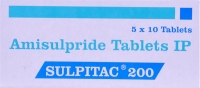 You can buy Amisulpride tablets online from Everest Online Pharmacy at a cheap price. Sulpitac 50 mg, 100 mg, 200 mg or 400 mg pills, manufactured by Sun Pharmaceutical Industries Limited, India, are supplied in a blister strip of 10 tablets. The 50 mg tablets cost only $0.43 per unit when you place an order for 300 tablets.
