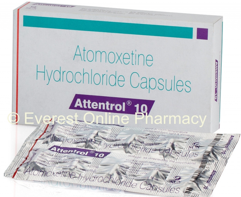 You can buy Generic Atomoxetine Hydrochloride capsules online from Everest Online Pharmacy at a cheap price. Attentrol tablets 4 mg and 8 mg pills, manufactured by manufactured by Sun Pharmaceutical Industries Ltd., India are supplied in a blister strip of 10 capsules. The 10 mg capsules cost only $0.47 per unit when you place an order for 240 capsules.