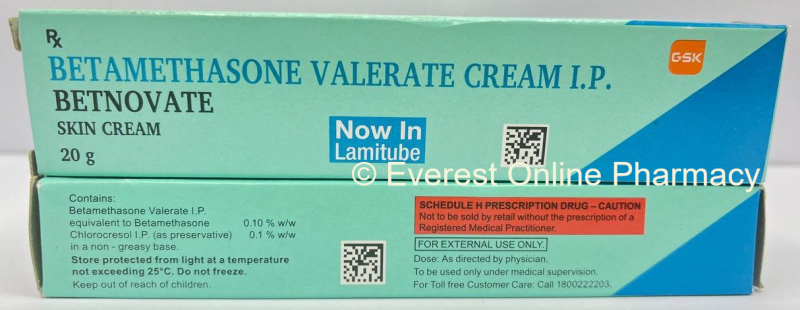You can buy Betamethasone Valerate Cream online from Everest Online Pharmacy at a cheap price. Betnovate Cream 0.10%, manufactured by GlaxoSmithKline Pharmaceuticals Limited, India are supplied in a tube of 20 gm. The 20 gm tube cost only $2.20 per unit when you place an order for 50 tubes.