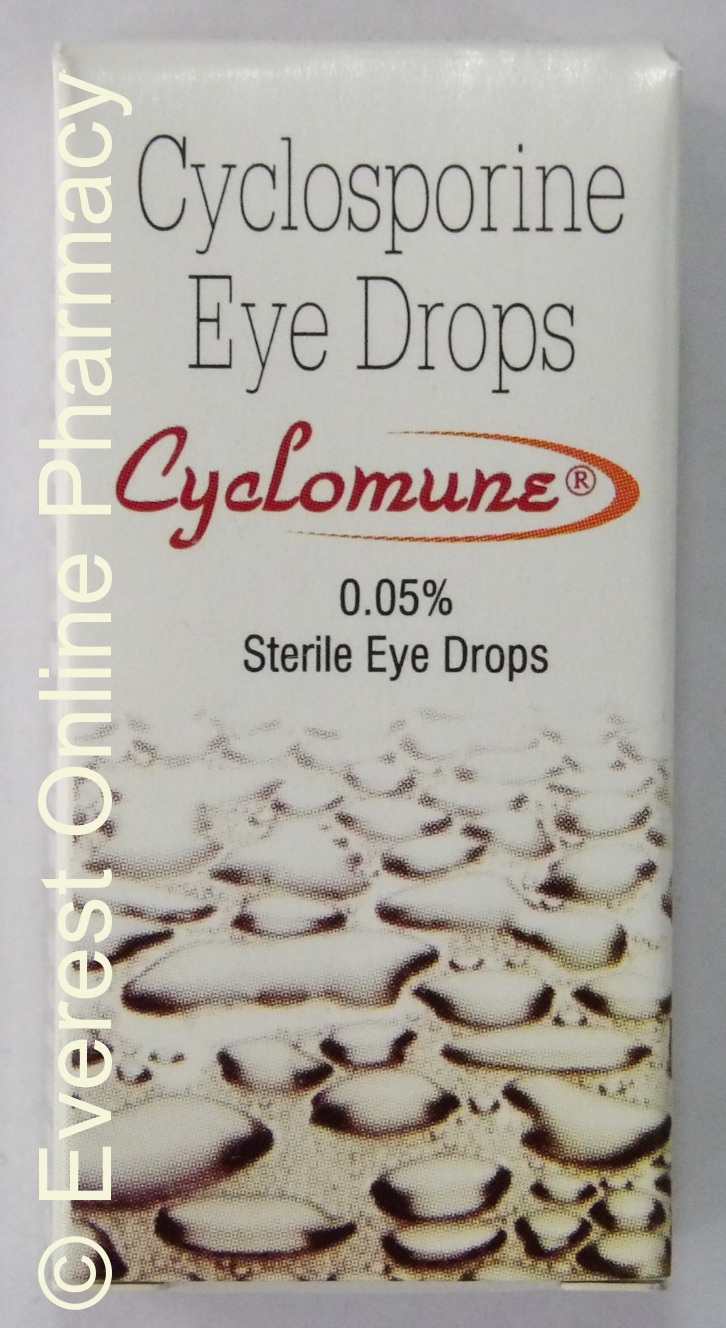Cyclomune Eye Drops manufactured by Sun Pharmaceutical Industries Limited, India, are available in the strengths of 0.05% and 0.1% of Cyclosporine.