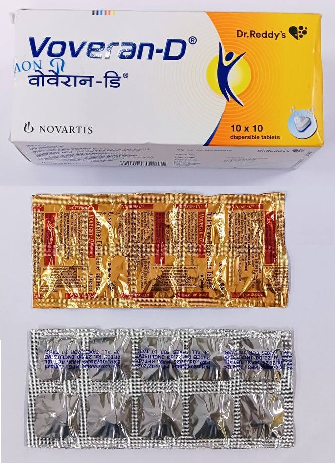 You can buy Diclofenac Sodium tablets online from Everest Online Pharmacy at a cheap price. Voveran D 50 mg and Voveran SR 75 mg and 100 mg pills, manufactured by Novartis India Limited, are supplied in a blister strip of 10 tablets or 15 tablets. The 50 mg tablets cost only $0.35 per unit when you place an order for 120 tablets.