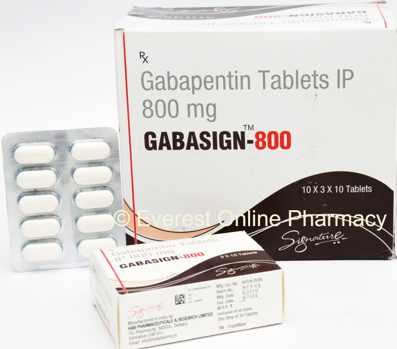 You can buy Generic Gabapentin online from Everest Online Pharmacy at a cheap price. Gabasign 300 mg Capsules and Gabasign 600 mg and 800 mg tablets, manufactured by HAB Pharmaceuticals & Research Limited (Signature), India, are supplied in a blister strip of 10 capsules or tablets. The cost of Gabapentin generic (Gabasign 300 mg capsules) is only $0.30 per unit when you place an order for 400 capsules.