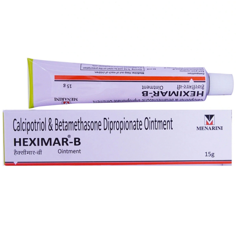 In our online pharmacy, Heximar-B Ointment is available in a tube of 15 g which contains 50 mcg of Calcipotriol and 0.5 mg of Betamethasone Dipropionate.