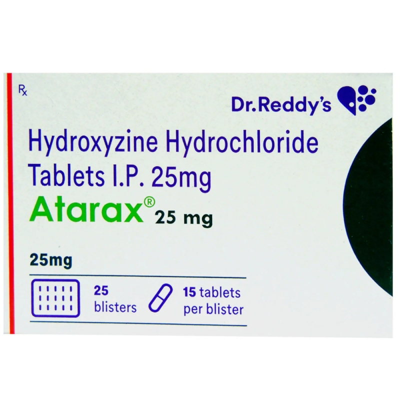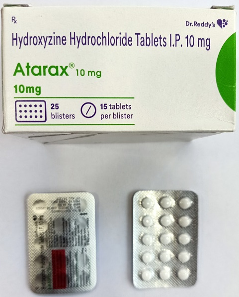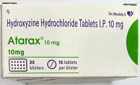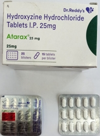 You can buy Generic Hydroxyzine Hydrochloride Tablets online from Everest Online Pharmacy at a cheap price. Atarax Tablets 10 mg and 25 mg pills, manufactured by Dr. Reddy's Laboratories Limited, India, are supplied in a blister strip of 15 tablets. The 10 mg tablets cost only $0.20 per unit when you place an order for 300 tablets.