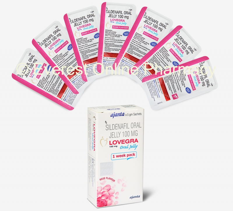 Lovegra Oral Jelly (Female Sildenafil Citrate Jelly) has been specially formulated by Ajanta Pharma Limited, India as a quick acting medication for treating sexual dysfunction in women. Lovegra jelly is manufactured in the strengths of 100 mg of Sildenafil Citrate.